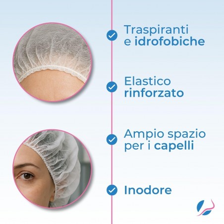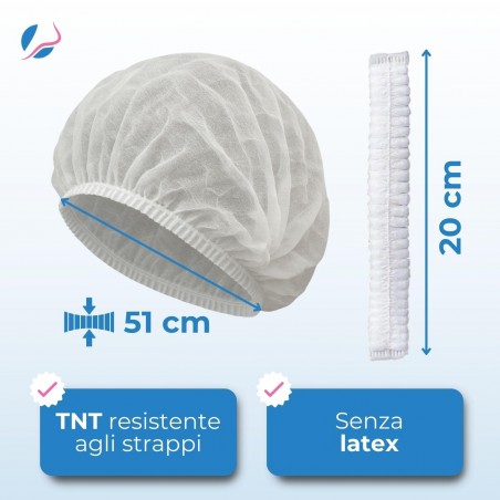 100 Cuffie Monouso in TNT, Dispositivo Copri Testa e Capelli, Bordo Elastico Rinforzato, Ideali per Uso Privato e Commerciale, Colore Bianco, scatole da 1.000 pezzi