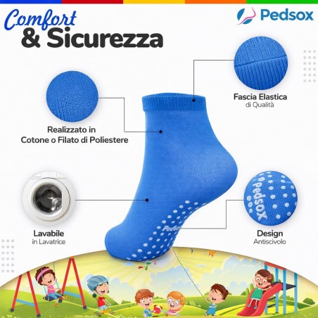 The first multicolor sock with antislip sole, suitable for use in playhouses and playgrounds. It guarantees the hygiene and safety of children attending playgrounds or recreational areas. Each pair of socks is packed individually to ensure maximum hygiene.