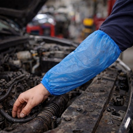 Disposable Polyethylene Arm Sleeves, Resistant and Waterproof with Double Elastic, for Work and Home Use, 16x40 cm, Blue