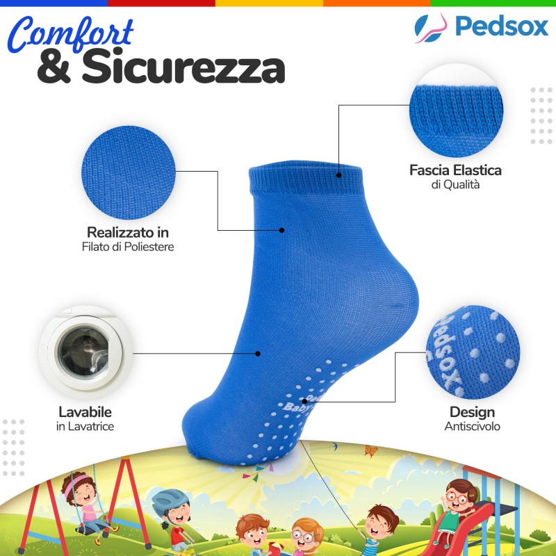 El primer calcetín multicolor con relleno antideslizante, adecuado para uso en parques y patios de juegos. Garantiza la higiene y seguridad de los niños mientras se divierten en parques infantiles o áreas recreativas. Cada par de calcetines se embala individualmente para garantizar una máxima higiene. Estos calcetines están diseñados para su uso en castillos inflables y áreas recreativas y garantizan la higiene y seguridad de los niños.